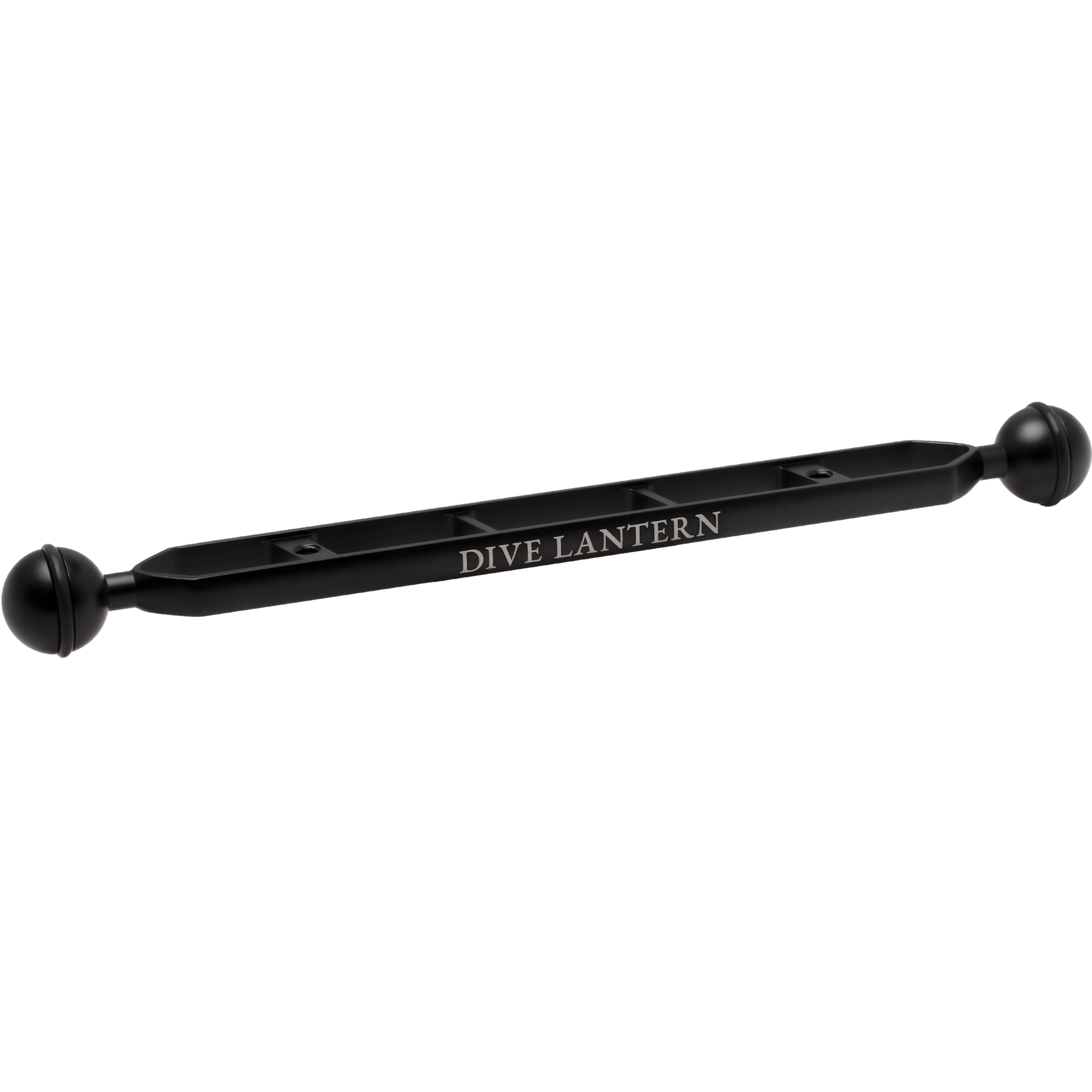 Aluminium double ball arms with one inch ball joint.  Each ball arm has at least one threaded hole for adding the Dive Lantern 1" Ball Mount can screw into giving another ball mount on the arm.  This can be used for additional lights such as focus lights and snoot lights that are light and don't need to be at the end of the main arms.